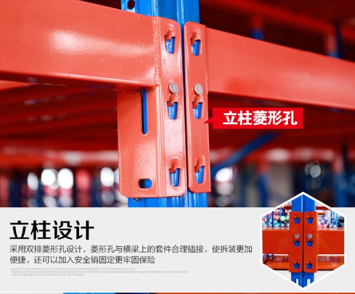2、是較普遍和廣泛使用的貨架之一(yī),適(shì)合(hé)絕(jué)大(dà)多數倉庫或產品貨(huò)物(wù)使用。