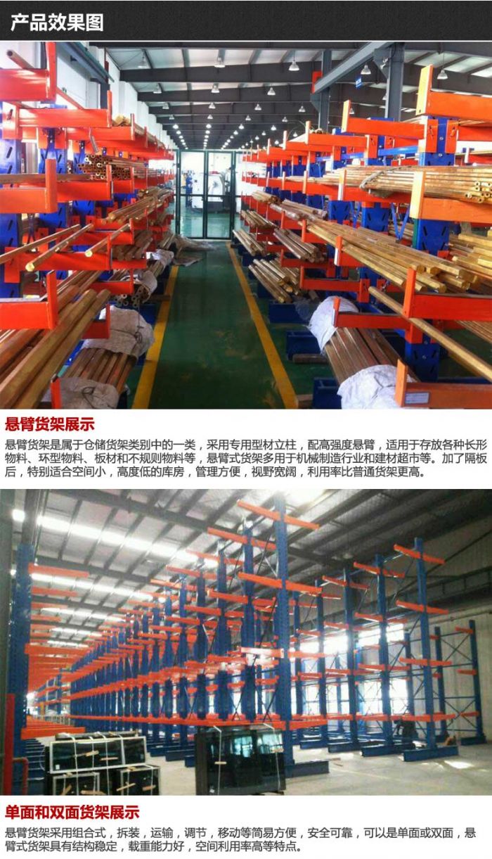4、懸臂貨架長度可根據場(chǎng)地情況,自由組合。