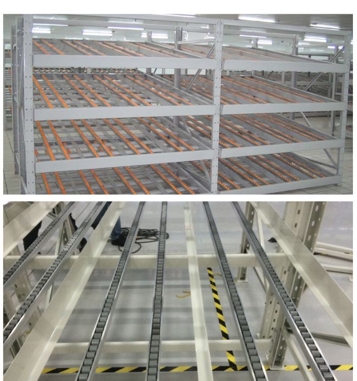 常州流利貨架等同於流利式貨架,產品常由中型橫梁(liáng)式貨(huò)架演變而成,通過滾道將貨物從配貨端(duān)輸送到取貨端(duān),貨物借助重(chóng)力自動下滑,可實(shí)現“先進先(xiān)出”作業,使用成本低,存儲速度快(kuài)、密度大。通常使用在企業的精益生產流水作業。